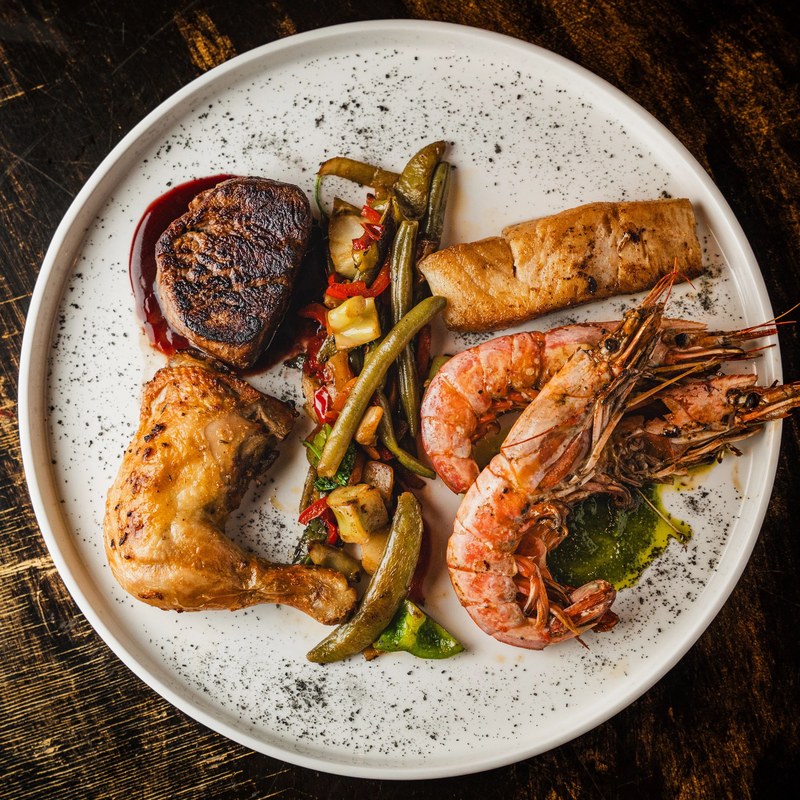 A flavorful journey from land to sea on one plate.